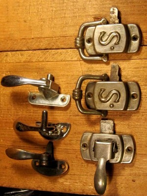 Title (ebay affiliate link): Group Of Six Old Hoosier Cabinet Door Latches Hardware Vintage Handle
