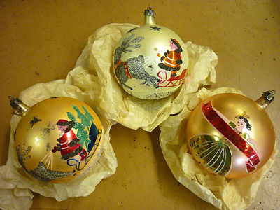 Title (ebay affiliate link): 3 Used Large Vintage Hand Painted Glitter Ornaments Poland Mercury Glass Scenic