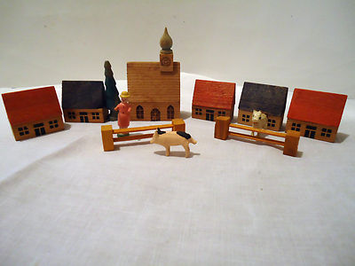 Title (ebay affiliate link): Erzgebirge Village Wooden Houses farmer and animals Miniature Dollhouse figures