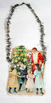 Title (ebay affiliate link): Santa with Victorian Children. Late 1890s Paper & Tinsel German Xmas Ornament.