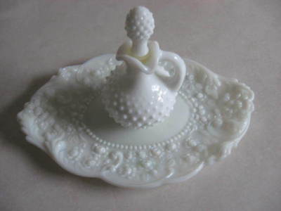 BEAUTIFUL PLATE AND PERFUME BOTTLE "MILK GLASS"