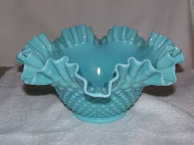 HOBNAIL AQUA/TURQUOISE/BLUE MILK GLASS RUFFLE TOP BOWL