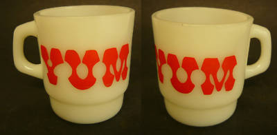 Vintage YUM YUM COFFEE MUG ORANGE FIRE-KING MILK GLASS