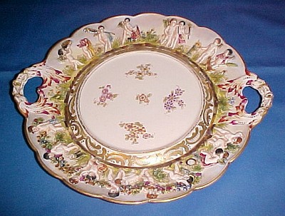 Title (ebay affiliate link): Beautiful Antique Capodimonte Porcelain Platter with Handles !!