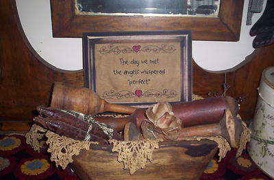 Title (ebay affiliate link): Primitive Framed Stitchery Beautiful Saying ".....angels whispered "perfect"