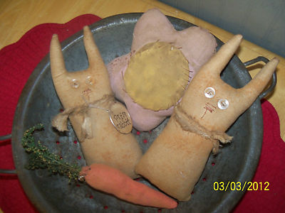 Title (ebay affiliate link): PRiMiTiVe EaStEr 2 BuNNy RaBBiTs w/ FlOwEr and CaRRoT