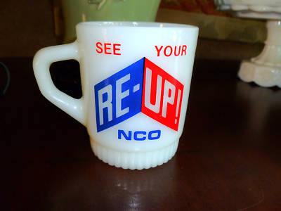 FIRE KING ANCHOR HOCKING MILK GLASS MILITARY RE UP MUG