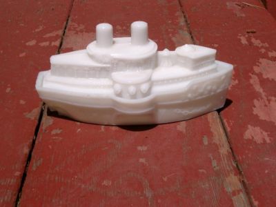 Old Milk Glass Covered Dish Boat Shape Remember Maine