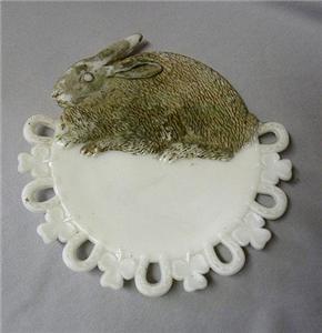 Antique Milk Glass Ribbon Plate w/Rabbit - NR!