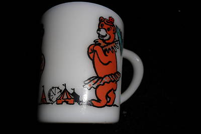 Title (ebay affiliate link): VINTAGE HAZEL ATLAS MILK GLASS GIRL BEAR CIRCUS MUG