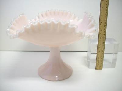 Vintage Rare Pink Milk Glass Center piece Square Fluted
