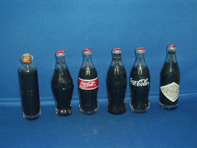 Title (ebay affiliate link): Cute Set of 6 Different Miniature Coca-Cola Soda Bottles Full of Coke