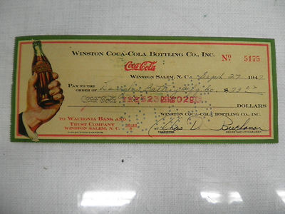 Title (ebay affiliate link): Winston Coca-Cola Bottling Co, Inc. Wachovia Bank Check September 27, 1947 NICE!