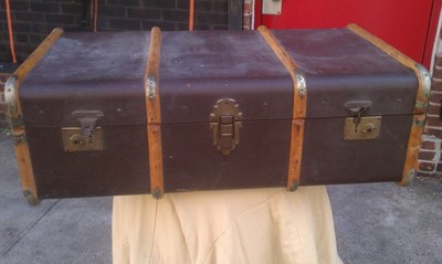 VINTAGE WOODEN BOUND STEAMER TRUNK
