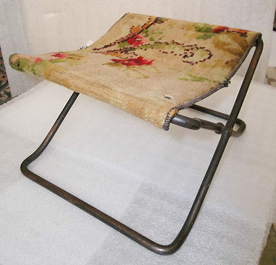 Title (ebay affiliate link): VINTAGE ANTIQUE FOLDING FOOT REST STOOL SEAT STEEL CARPET UNIQUE