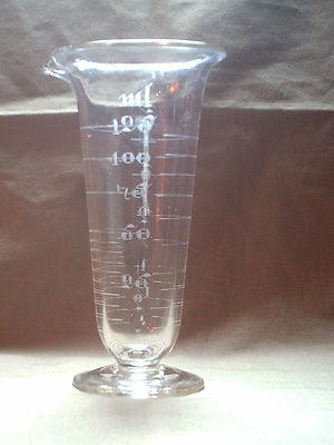 Antique Apothecary/Pharmacist Hand Etched Glass Measure in Oz & ML 6.25" Tall