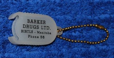 Vintage Advertising Keychain 2 Digit Phone No. Drugstore Birtle Manitoba Canada