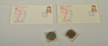 2 Ronald Reagan 1984 Antigua & Barbuda envelopes with mint Reagan coins.