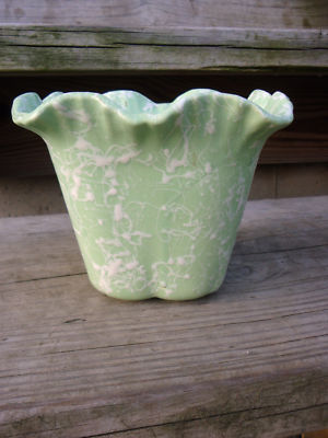 VTG mint green splatter ruffle Shawnee planter 2509 USA