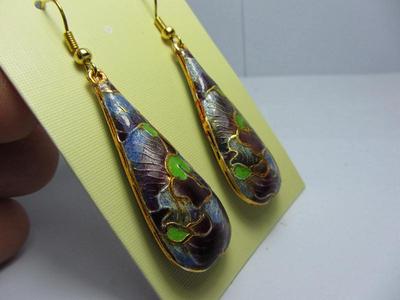 Title (ebay affiliate link): Cloisonne enamel Gold-Plated purple viridity floriated Dangle teardrop Earrings