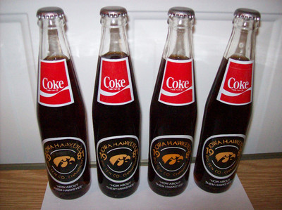 Title (ebay affiliate link): (4) 1981 IOWA HAWKEYES COKE BOTTLES (FULL)