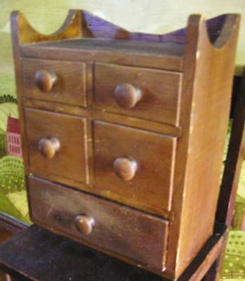 Title (ebay affiliate link): Prim Antique 5 Drawer Spice Chest Wall Cabinet Crates