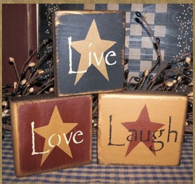 Title (ebay affiliate link): PRIMITIVE BLOCK SHELF SITTERS SIGN~~LIVE~~LAUGH~~LOVE~~STARS~~