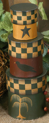 Title (ebay affiliate link): PRIMITIVE HOME DECOR~FOLK ART~3 STACKING NESTING BOXES~~NEW~~