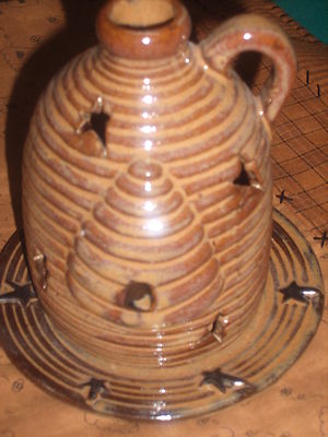Title (ebay affiliate link): PRIMITIVE POTTERY TEA LIGHT BURNER-HONEY AND ME