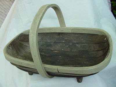 Title (ebay affiliate link): Old *GATHERING BASKET* GREEN PAINT ENGLISH GARDEN TRUG Footed Bentwood Slat AGED