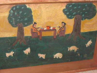 Title (ebay affiliate link): TRUE ORIGINAL FOLK ART PAINTING AAFA FOLKY RURAL NEBRASKA FARMERS PICNIC & LAMBS