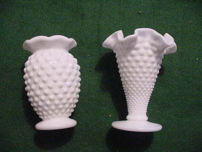2 Fenton Milk Glass Hobnail Vases
