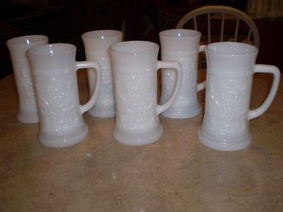 Federal Milk Glass 6 Steins Mugs