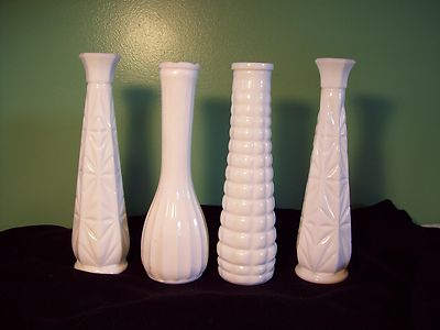 Vintage Lot of 4 Milk Glass Vases