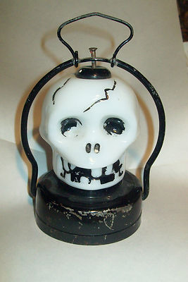 Title (ebay affiliate link): RARE ~ VINTAGE HALLOWEEN MILK GLASS SKULL LANTERN ~ 5 1/2" TALL