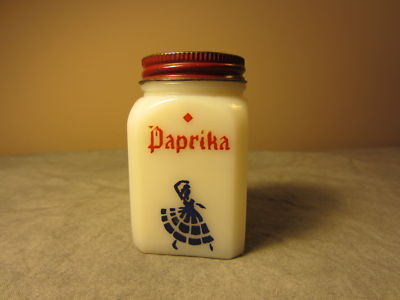 Title (ebay affiliate link): Vintage Tipp City Milk Glass Shaker (McKee) Dutch Scene - Paprika with label