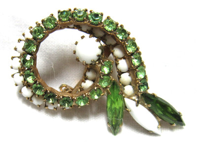Vintage Unsigned GREEN & Milk Glass Stone Brooch