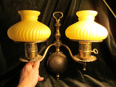 Vintage brass 2 arm sconce yelllow milk glass shades art deco?