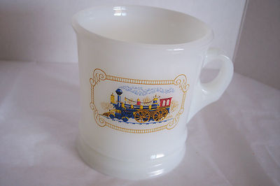 Vintage Avon Milk Glass Train Picture Mustache Cup!