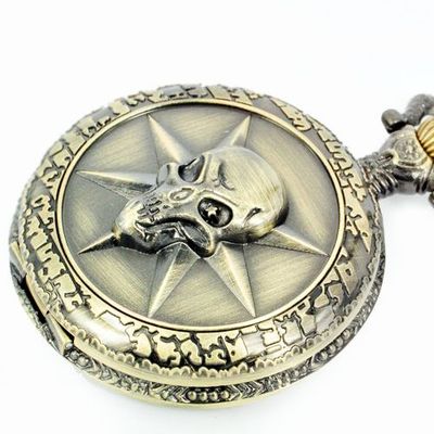 Title (ebay affiliate link): Vintage style Antique Bronze Skull Star Mens Quartz Pocket Clock Watch Rare gift