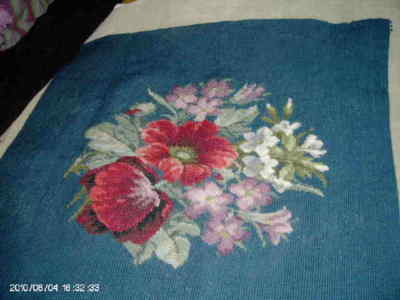 VINTAGE NEEDLEPOINT CHAIR SEAT FOOTSTOOL COVER