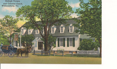 Title (ebay affiliate link): Raleigh Tavern, Colonial Coach, Williamsburg, Virginia Postcard