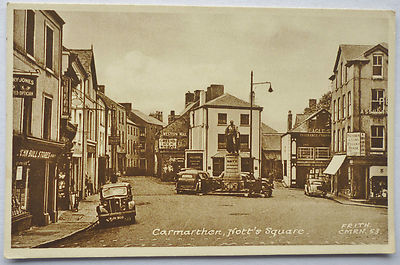 Title (ebay affiliate link): Carmarthen Nott's Square Shops & Pubs Swan Inn Carmarthenshire - old postcard