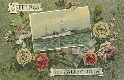 Poscard Greetings from California 1908 Visit"Great White Fleet" U S S Glacier