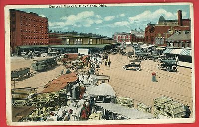 CLEVELAND OHIO OH OHIO CENTRAL MARKET OLD CARS WAGONS SAPIRSTEIN POSTCARD