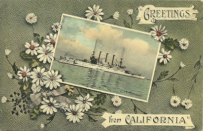 Title (ebay affiliate link): Poscard Greetings from California 1908 Visit"Great White Fleet" USS Missouri