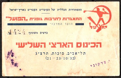 Title (ebay affiliate link): JUDAICA PALESTINE 1932 ENTRANCE TICKET "HAPOEL" TEL AVIV