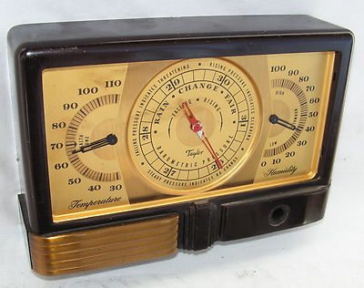 Title (ebay affiliate link): Taylor Instrument Companies Art Deco Bakelite Weather Station Barometer c. 1926
