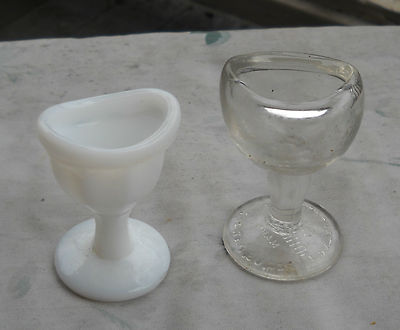 LOT 2 Vintage Antique Glass Eye Cups Washers John Bull 1917 Milk Glass LOOK NR