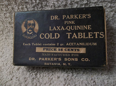 Title (ebay affiliate link): Patent Medicine Dr. Parker's Pink Laxa-Quinine Cold Tablets , Batavia New York